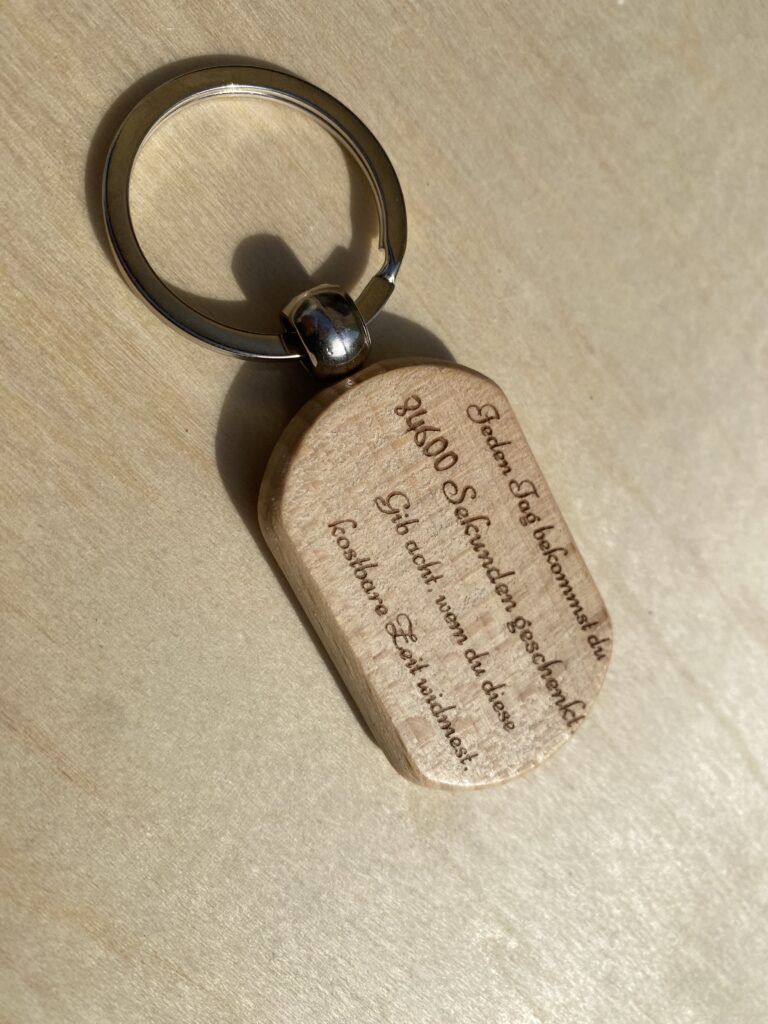 „Der Schlüsselanhänger mit meiner Wunschgravur ist einfach perfekt geworden! Die Details der Gravur sind unglaublich fein und die Qualität des Materials ist hervorragend. Es ist ein tolles, individuelles Accessoire, das nicht nur praktisch ist, sondern auch stilvoll aussieht. Ich kann es nur weiterempfehlen!“